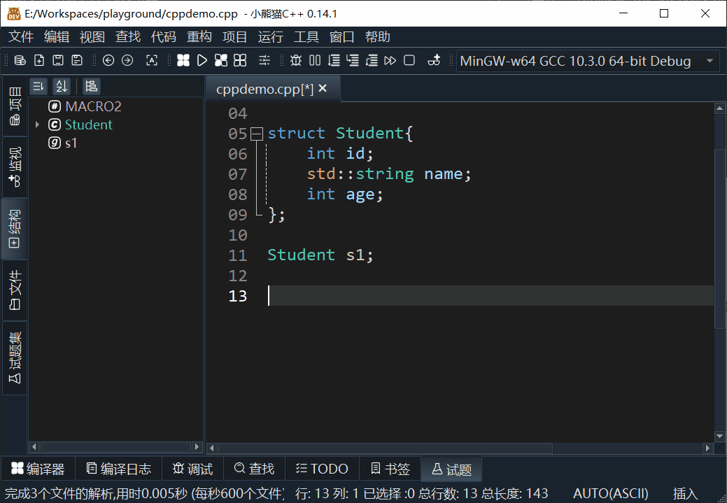 通过集成自动缩进、智能代码补全、智能语法高亮和实时语法检查等功能,小熊猫C++提供了流畅的代码编辑体验,可以大幅度提升代码编写的效率。